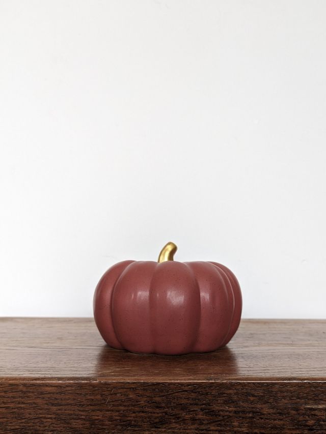 Dekoracyjna dynia ceramiczna w kremowo-białym kolorze z brązowym ogonkiem. Idealna jako jesienna ozdoba stołu, półki czy komody, wprowadzająca przytulny klimat do wnętrza.