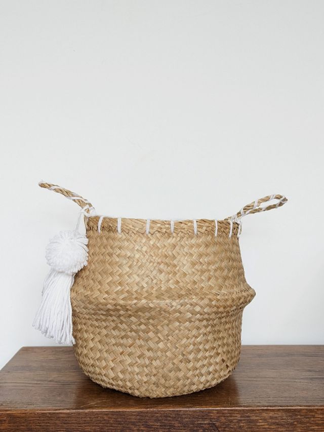 Kosz pleciony z trawy morskiej dwukolorowy.