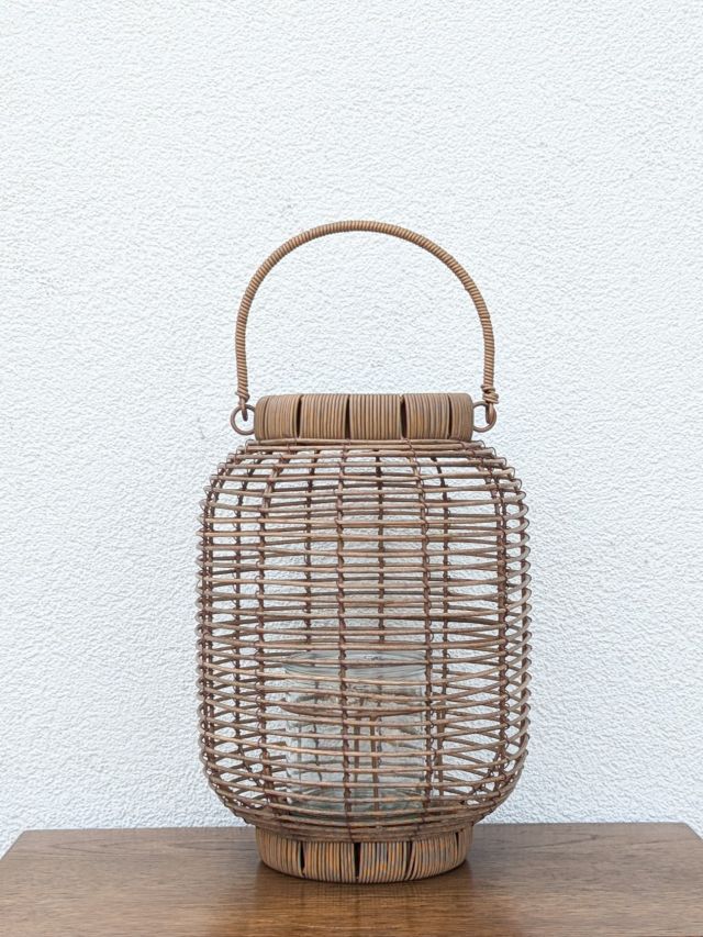 Lampion ozdobny na świece. Lampion z ozdobną obrączą, stylizowany na rustykalny. Uchwyt okrągły.