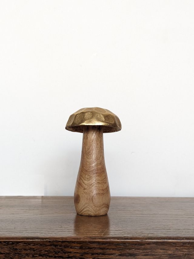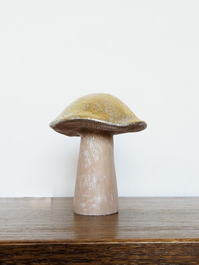 MAŁY GRZYBEK DEKORACYJNY ZE ZŁOTYM KAPELUSZEM