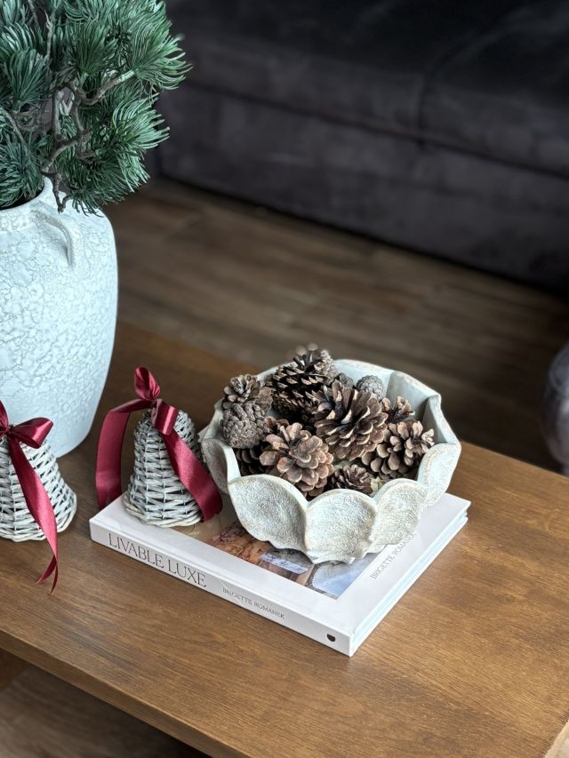 Stylowa misa ozdobna wykonana z cementu w beżowo-szarym kolorze. Jej prosta, a zarazem elegancka forma sprawia, że doskonale komponuje się z nowoczesnymi i minimalistycznymi aranżacjami wnętrz. Może pełnić funkcję praktycznej ozdoby stołu, komody czy konsoli, a także służyć jako naczynie na dekoracje sezonowe, owoce czy świece.