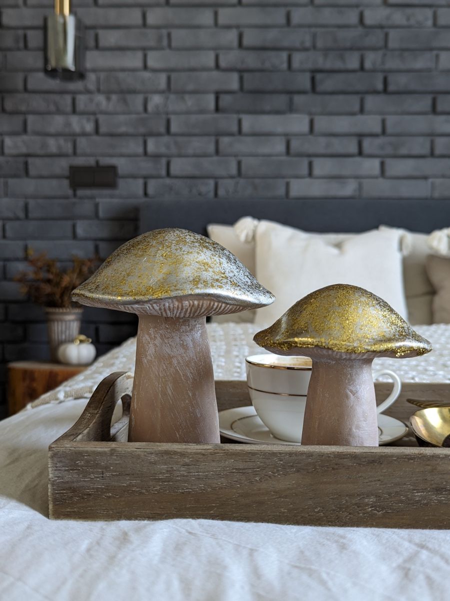 1. DUŻY GRZYBEK DEKORACYJNY ZE ZŁOTYM KAPELUSZEM