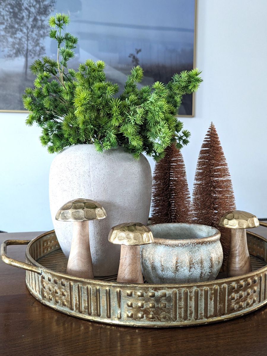 3. DUŻY GRZYBEK DEKORACYJNY ZE ZŁOTYM METALOWYM KAPELUSZEM