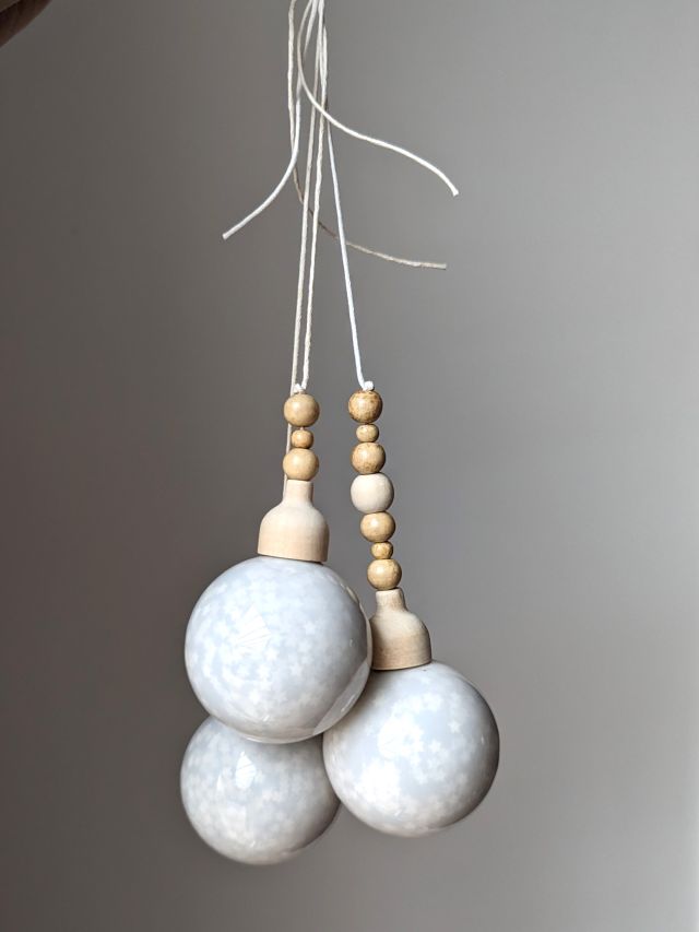 1. BOMBKA BIAŁA SZKLANA POTRÓJNA Z KORALIKAMI